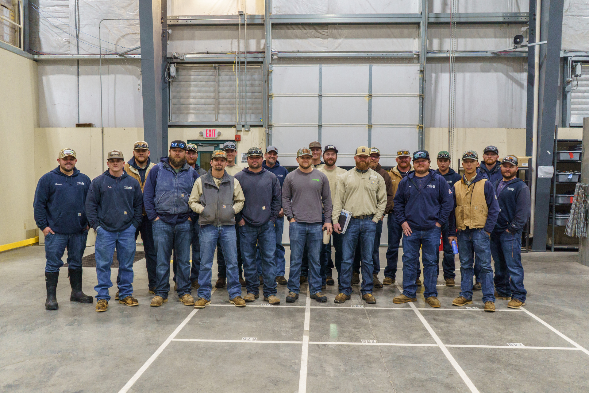 Twenty Ozarks Electric workers pose for a photo early in the morning before driving to Mississippi for a mutual aid trip following winter storm Fern.
