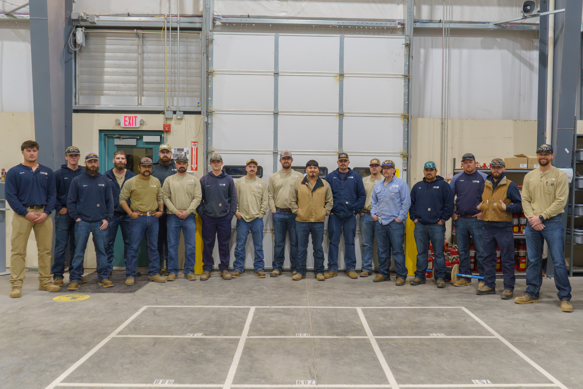 Twenty Ozarks Electric workers pose for a photo early in the morning before driving to Mississippi for a mutual aid trip following winter storm Fern.
